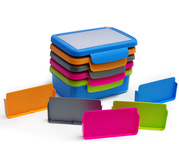 na výběr máte 6 základních barev misek + 9 barev víček a přepážek